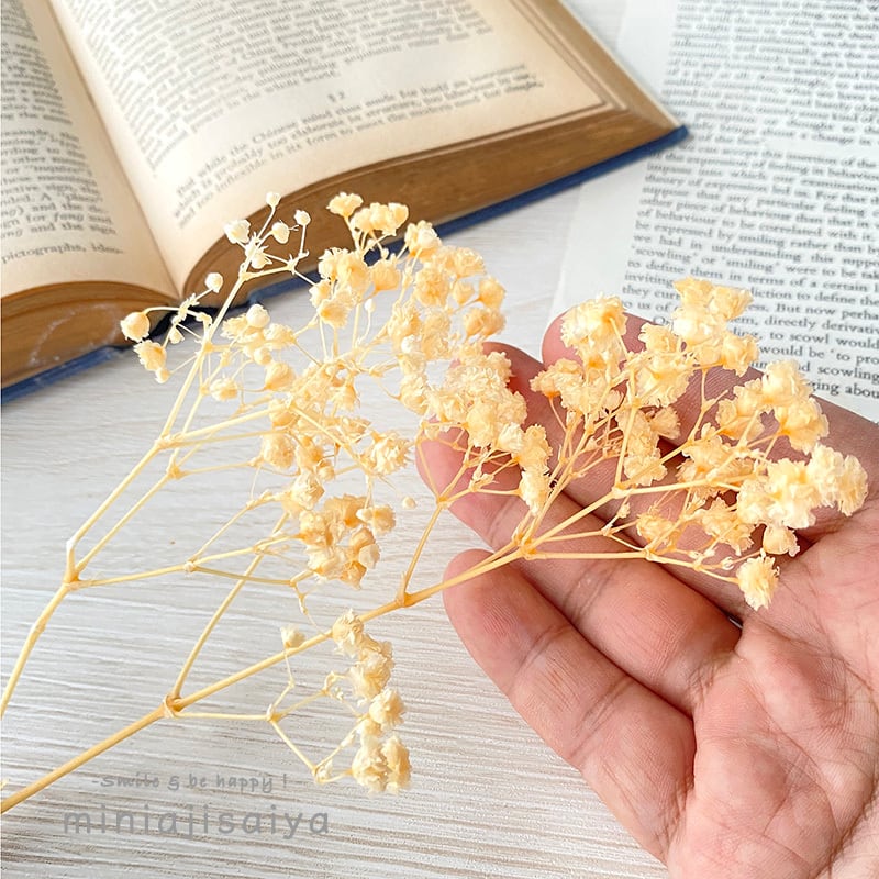 カスミの花は、どうしても加工液につけるとしぼんでしまうのですが、花部分は、本来のカスミ草の花に近い状態に仕上がっています。