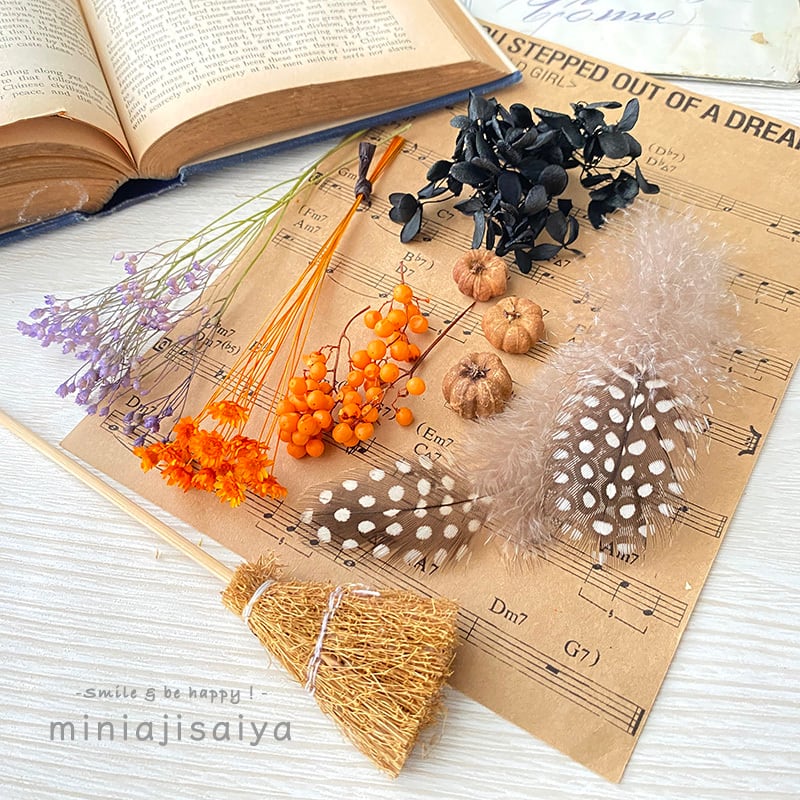 ちょっと長めの魔女のミニほうきをベースに、ミニパンプキンのようなプッカポッドは、ハロウィンの大定番!