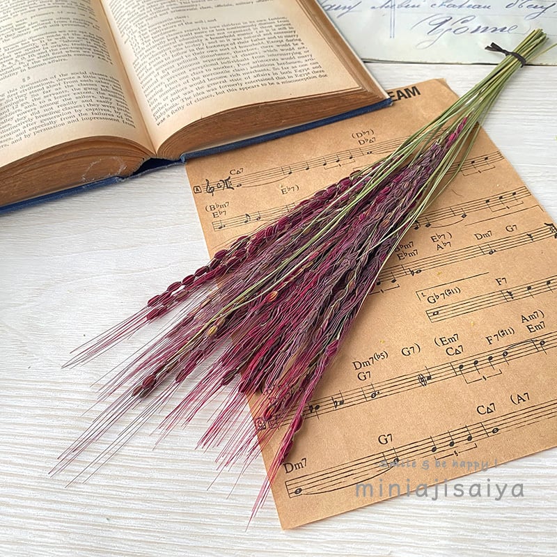 古代米の稲穂、むらさき稲をドライフラワーにしたものです。