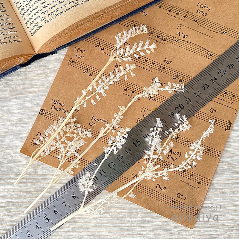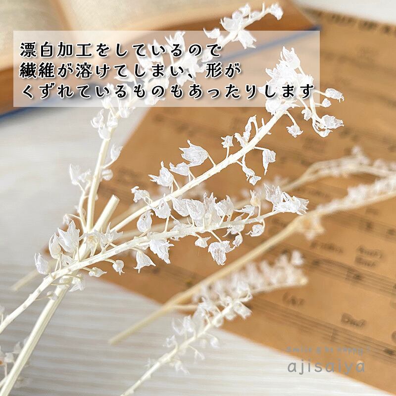 一度漂白加工をしているせいか、お花の繊維の部分が溶けてしまったりしたものも混ざっています。