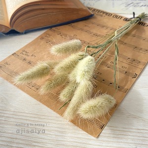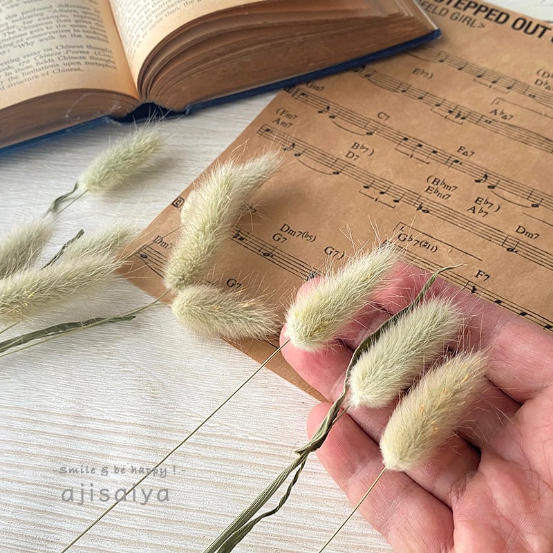 ちなみに、このラグラスは、ほわほわ花材のため、撮影背景にすると輪郭がややぼやけます。やわらかな背景花材のイメージには、ぴったりですが、シャープな作品&撮影イメージにはあわないので、お気をつけください。