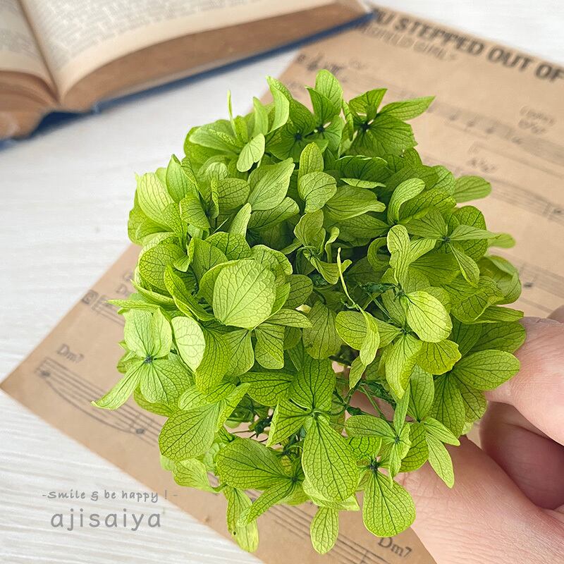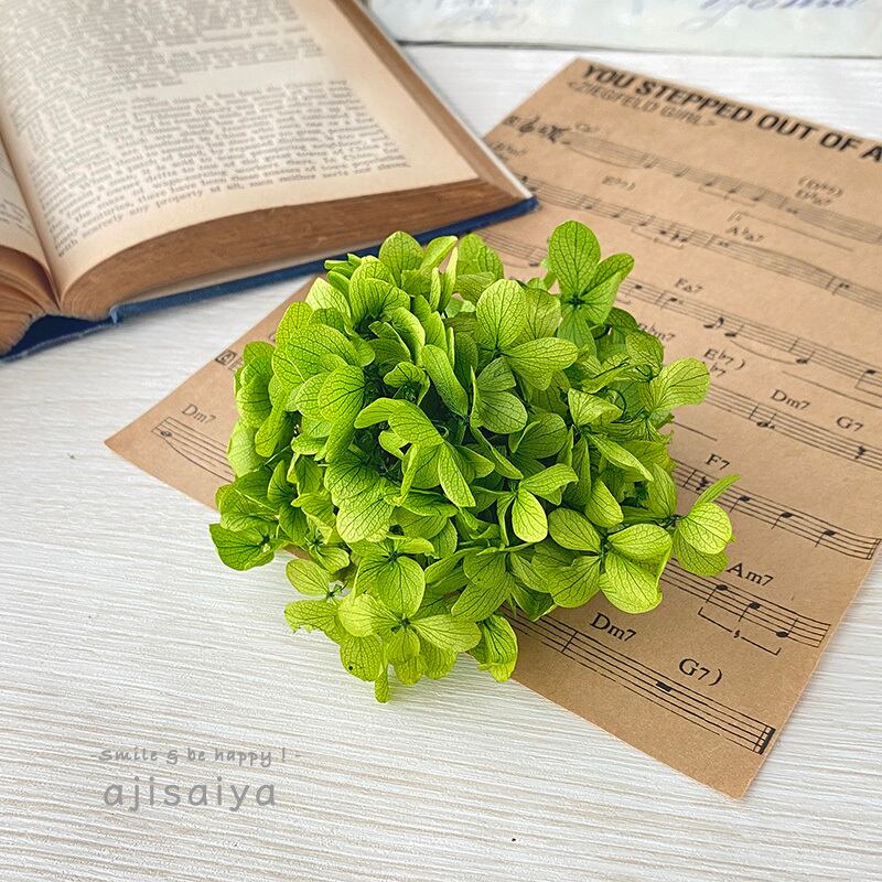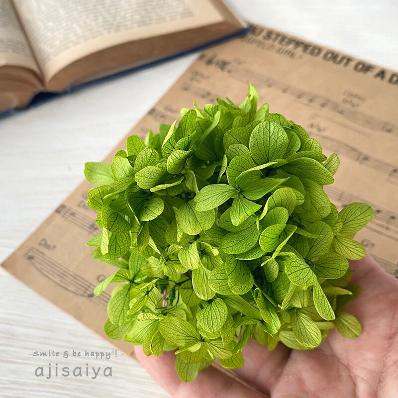 紫陽花のプリザーブドフラワーの中では一番流通量の多い、グリーン色です。