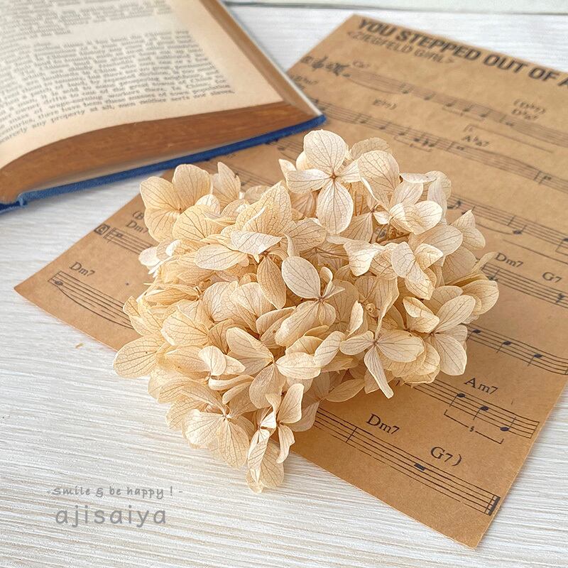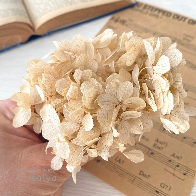 ニュアンスカラーにもぴったりのシャンパンカラーの紫陽花(プリザーブド加工)です。