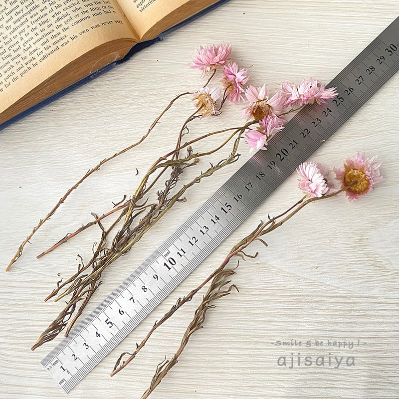 乾燥した地域で成長するので、カサカサした質感のピンクの花が特徴的なドライフラワーの定番素材です。