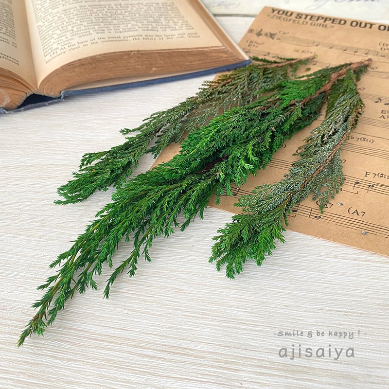 リースやスワッグで、大活躍のグリーン素材。まだ、大きく育っていないヒバをプリザーブド加工したものです。